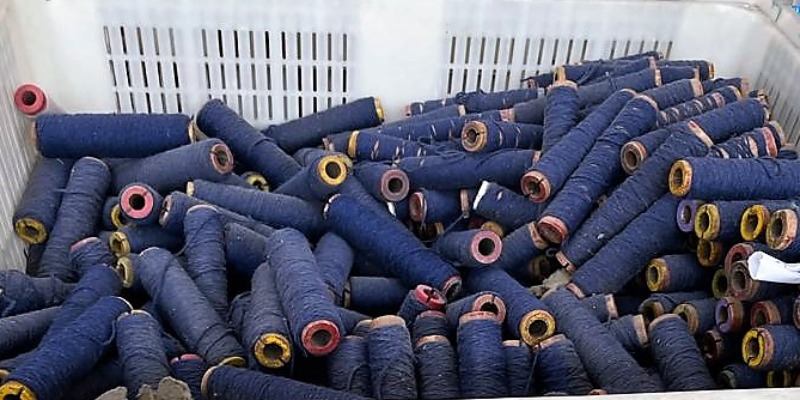 If you would like more information on skeins of thread that come from textile industry waste, contact our sales office.