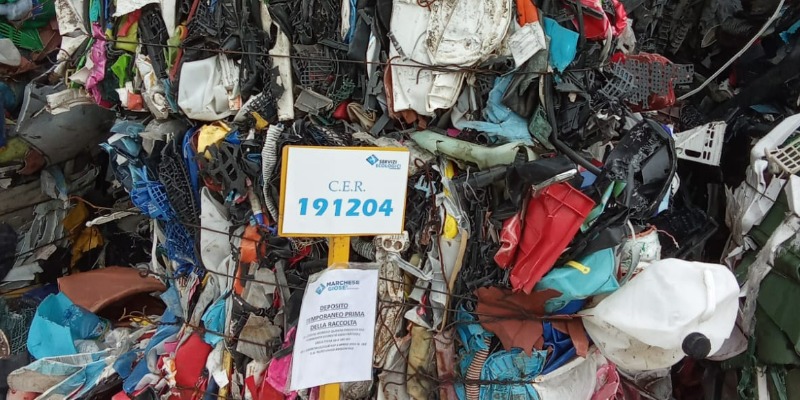 The rigid plastic is pressed into bales with a diameter of 100x100x120, having an average weight of 400/460 kg. with an annual production of 120 tons (approximately 7 loads/tinder).